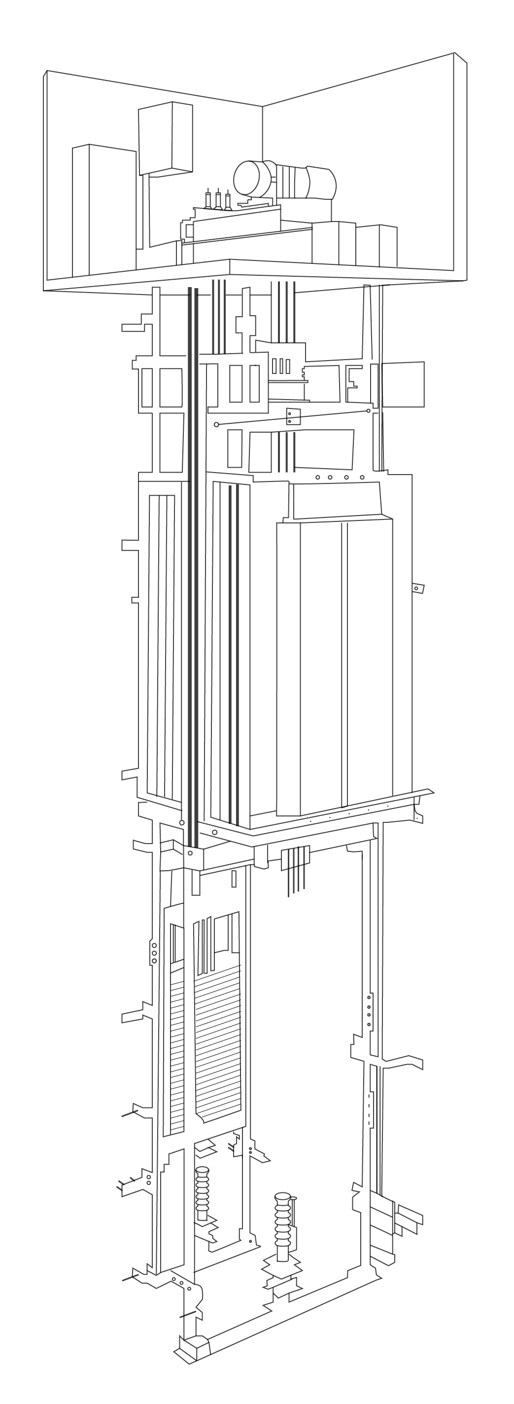 GeN2 Premier電梯配置了緊湊型機房, 占地面積更小,不超過井道面積,更加節省空間。